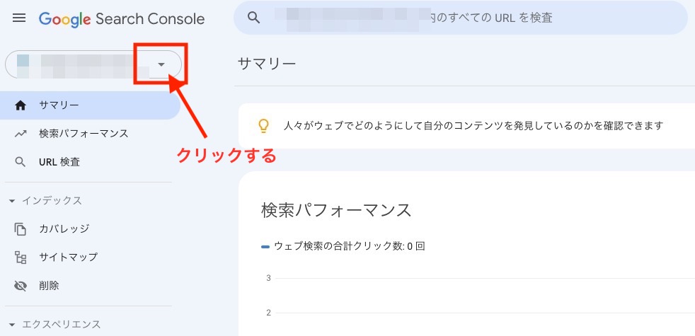 初めてサーチコンソールにサイトを登録する人は、このSTEP②をスキップしてください。